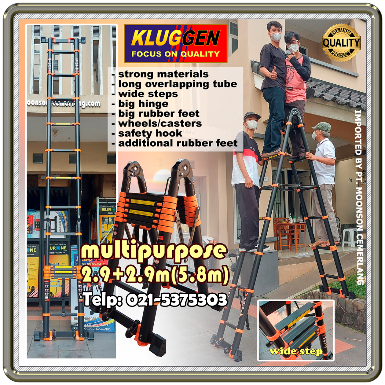 Tangga teleskopik tipe multipurpose, yaitu yang bisa segitiga dan bisa dibentang lurus, lebih kritikal lagi ketika hendak digunakan dalam bentuk lurus dengan ketinggian di atas 5 meter. Untuk itu pastikan anda benar-benar menggunakan tangga teleskopik terbaik.