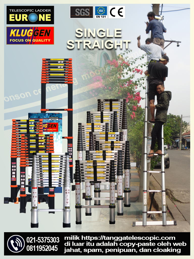 Tangga telescopic lurus sebagaimana namanya adalah tangga lipat yang ketika dibuka akan berbentuk lurus. Tangga ini tepatnya menggantikan fungsi tangga lurus tradisional yang biasanya terbuat dari kayu atau bambu. Tapi kali ini pemilik tangga tidak tidak akan bingung lagi untuk menyimpan tangga saat tidak digunakan. Begitu juga dalam hal pemakaian, biasanya tangga lurus tradisional benar-benar bikin repot saat hendak digunakan di dalam ruangan; membentur sana-sini, bahkan bisa merusak barang berharga di sekitarnya. Tetapi tidak demikian halnya dengan tangga telescopic lurus yang begitu ringkas dan mudah dipindah-pindahkan dan tingginyapun fleksibel ketika hendak digunakan. Lebih jauh bisa KLIK DISINI.