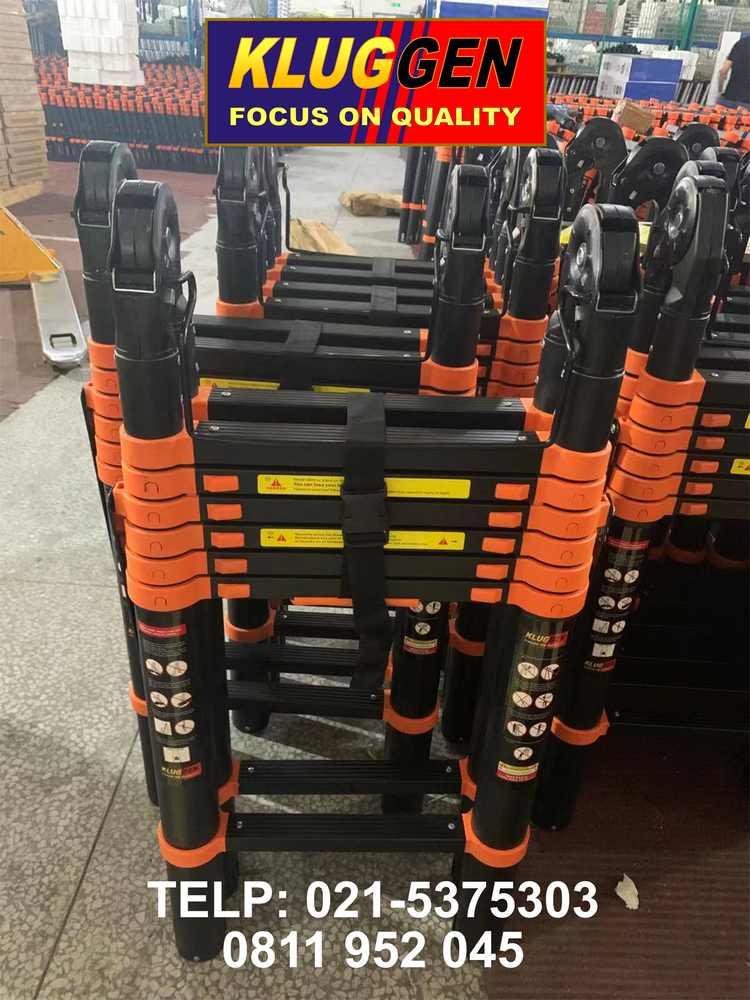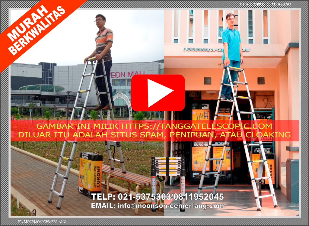 Tangga telescopic atau sering ditulis tangga teleskopik tipe lipat kami sediakan dua merek berkualitas yaitu Eurone dan Kluggen. Perbedaan diantara kedua merek tsb. yang paling utama adalah soal warna dan ketinggian. Merek Eurone berbasis pada warna pipa aluminium original sehingga tampak berwarna silver; sedangkan mereka Kluggen berwarna hitam. Dalam hal ketinggian, Kluggen menyediakan tangga teleskopik lipat dengan ketinggian di atas pada umumnya. Karena itu merek Kluggen memiliki beberapa spesifikasi tambahan seperti big joint (big hinge), big rubber feet, long overlap, dan safety hook. Kesemuanya itu memang sangat diperlukan untuk menunjang tangga teleskopik dengan ketinggian di atas rata-rata. Tidak seperti banyak merek lain yang menyediakan tangga dengan ketinggian di atas rata-rata, tetapi tidak ditunjang dengan perlengkapan yang memadai. Akibatnya tangga melengkung dan goyang parah saat dipanjat.